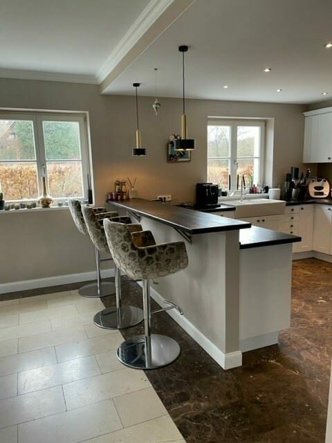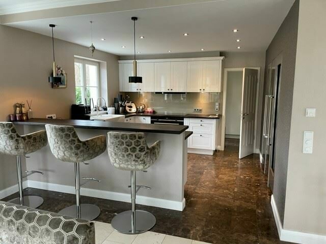 Offene Küche mit amerikanischem Kühlschrank, Weinkühlschrank, Barbereich